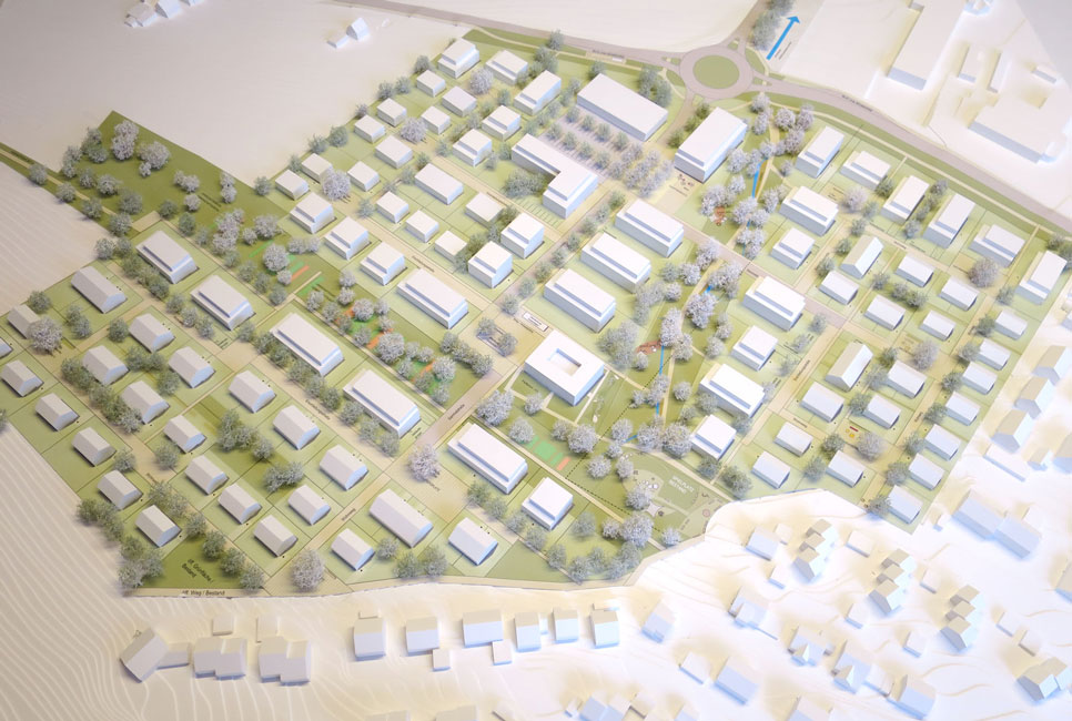 Mix aus Einfamilienhäusern, Doppelhäusem, Reihenhäusern und barrierefreien Mehrfamilienhäusern.